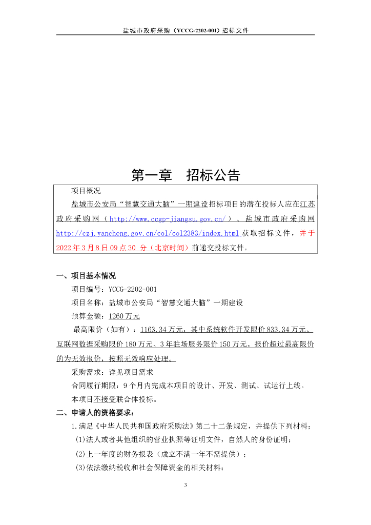 盐城市公安局“智慧交通大脑”一期建设招标文件.doc