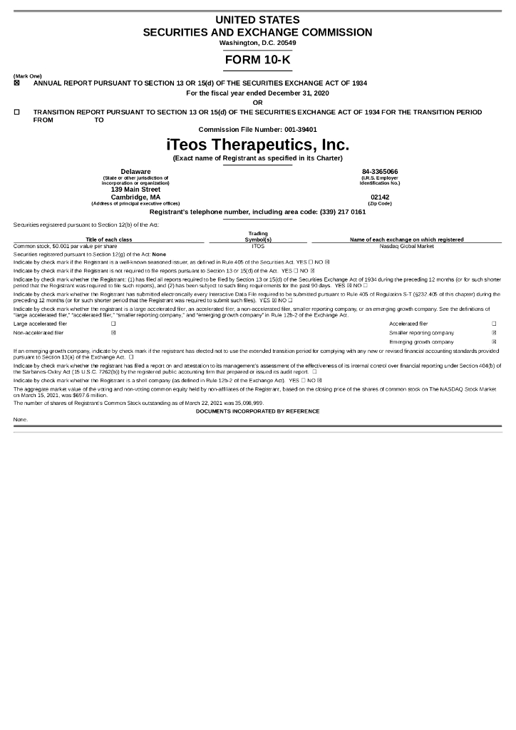 iTeos Therapeutics, Inc.(ITOS)2020财年年度报告(英文版).pdf