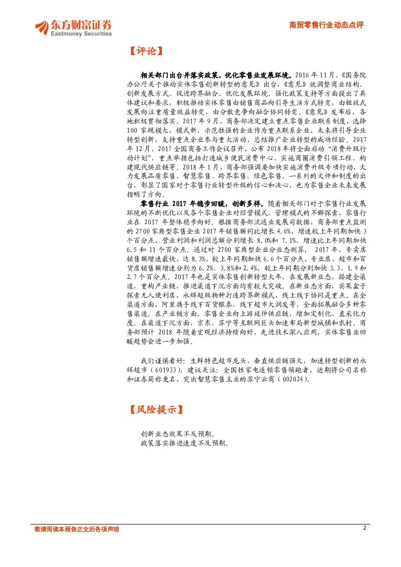 东方财富证券:商贸零售行业动态点评:零售业持续回暖,未来向智慧化、品质化发展.pdf