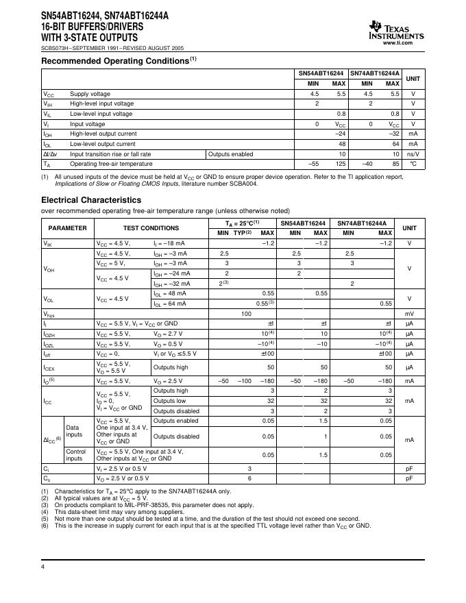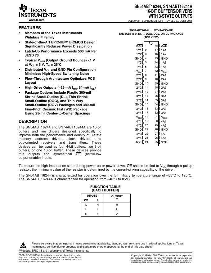 TEXAS INSTRUMENTS SN54ABT16244, SN74ABT16244A 数据手册.pdf