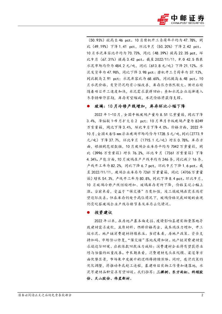 中邮证券:2022年1-10月建材行业数据点评:水泥产量降幅收窄,玻璃库存环比下降.pdf