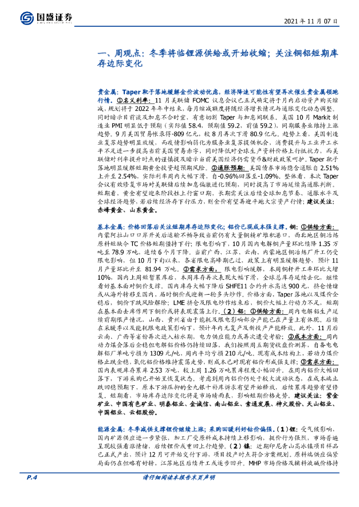 国盛证券:有色金属行业周报:冬季将临锂源供给或开始收缩;关注铜铝短期库存边际变化.pdf