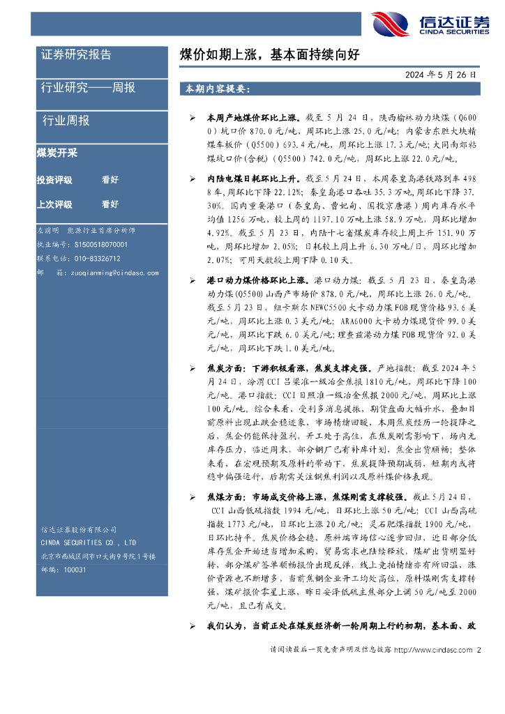 信达证券:煤价如期上涨,基本面持续向好.pdf