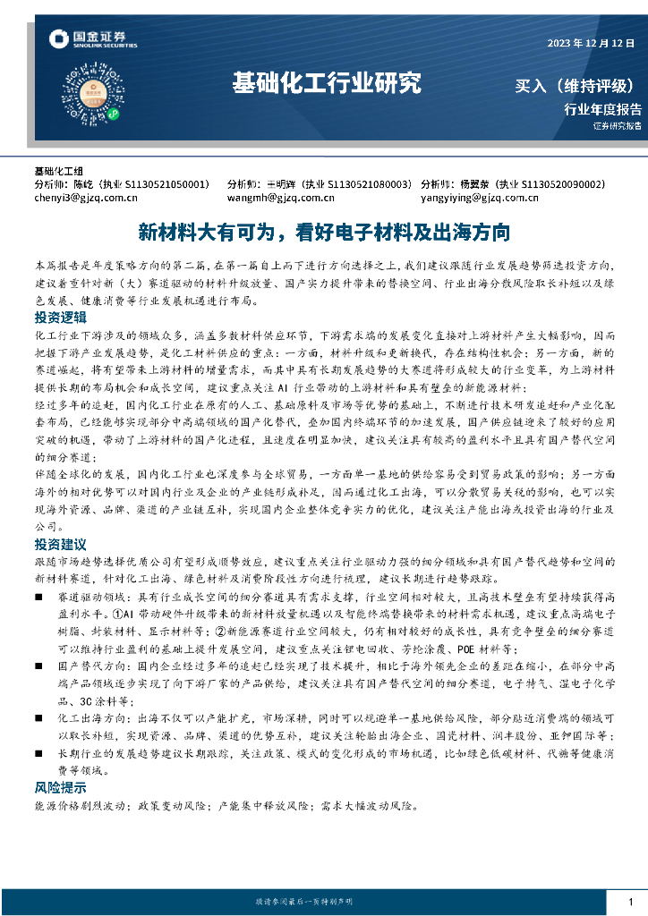 国金证券:基础化工行业研究:新材料大有可为,看好电子材料及出海方向.pdf