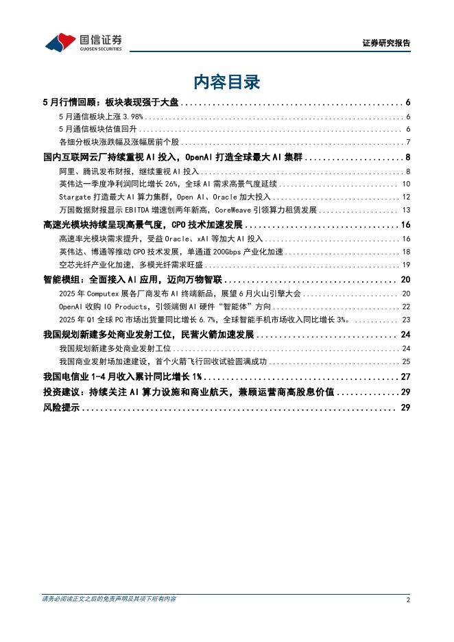 国信证券:通信行业2025年6月投资策略:高速光模块景气度持续,商业航天发展加速.pdf
