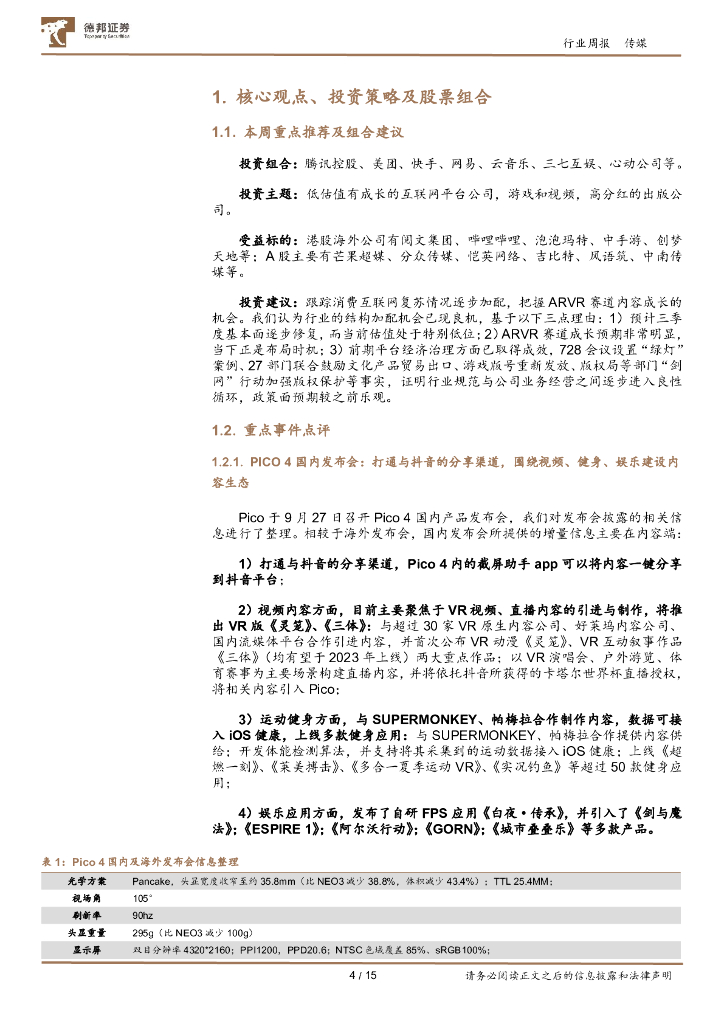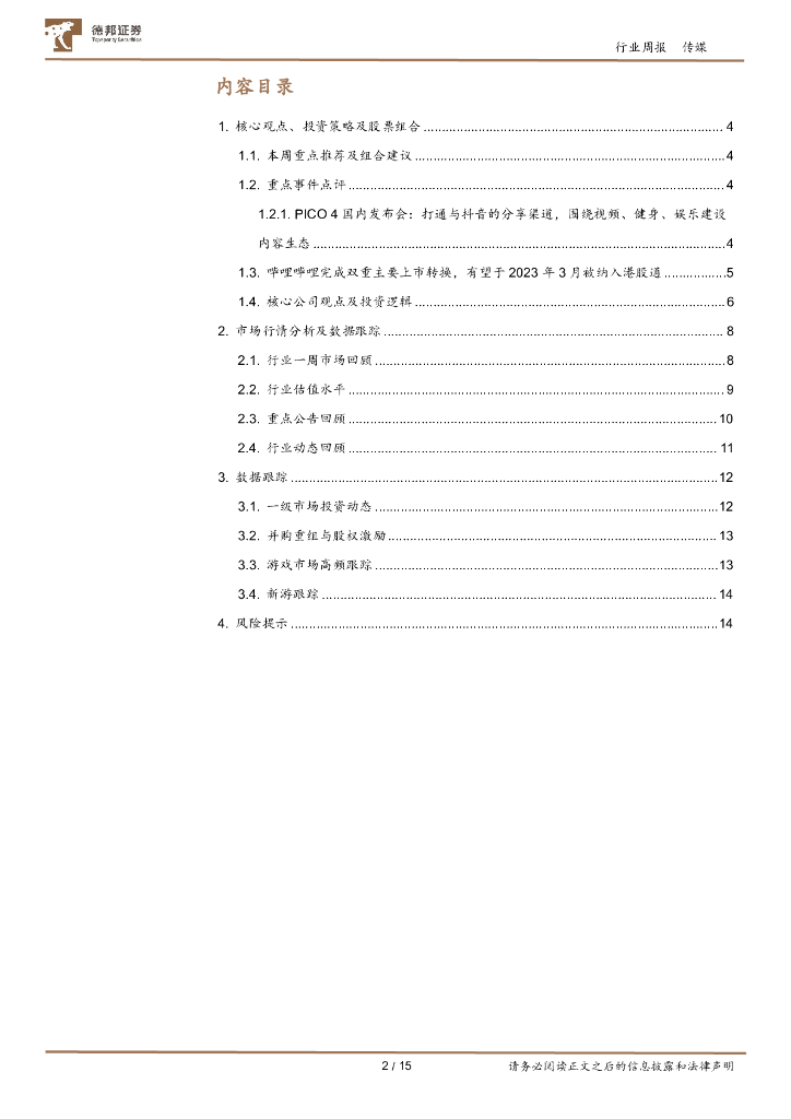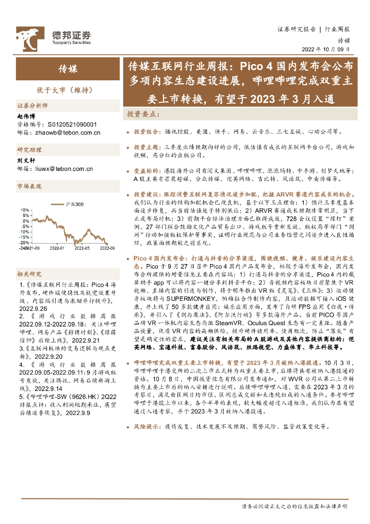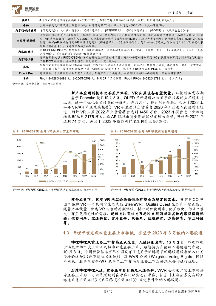 德邦证券:传媒互联网行业周报:Pico 4国内发布会公布多项内容生态建设进展,哔哩哔哩完成双重主要上市转换,有望于2023年3月入通.pdf
