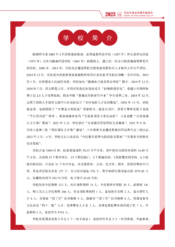 陇南师范高等专科学校2023届毕业生就业质量报告.pdf