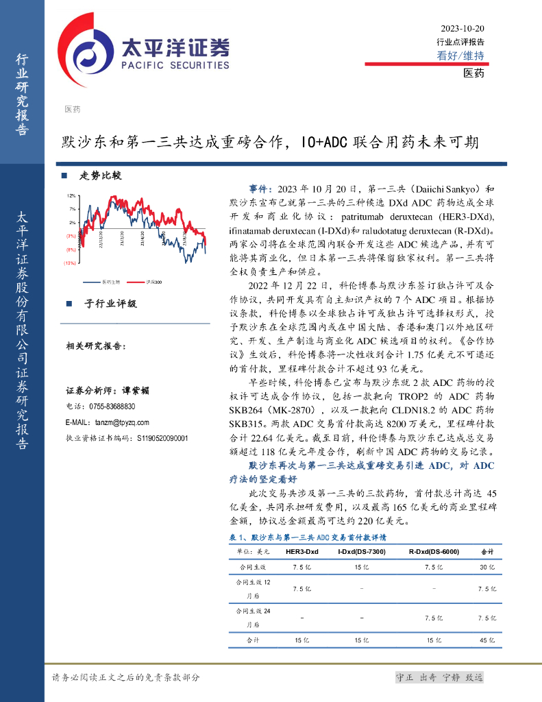 太平洋证券:医药:默沙东和第一三共达成重磅合作,IO+ADC联合用药未来可期.pdf