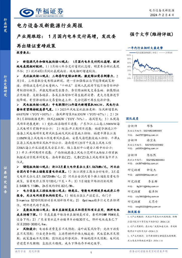 华福证券:电力设备及新能源行业周报:产业周跟踪,1月国内电车交付高增,发改委再出绿证重磅政策.pdf