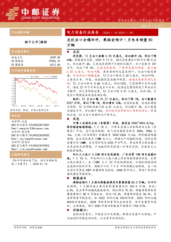 中邮证券:电力设备行业报告:光伏出口企稳回升,乘联会预计1月电车销量80万辆.pdf
