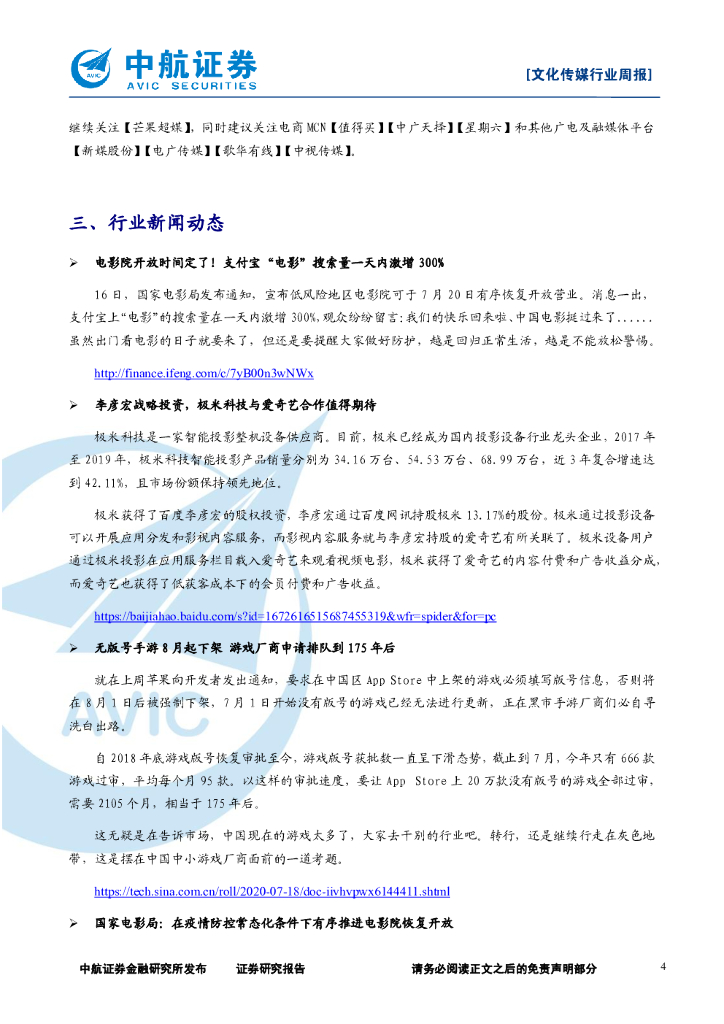 中航证券:文化传媒行业周报:影院复工落地,中报业绩预告游戏、视频板块亮眼.pdf