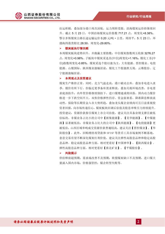 山西证券:煤炭行业周报:情绪有所好转,二级市场表现回升.pdf