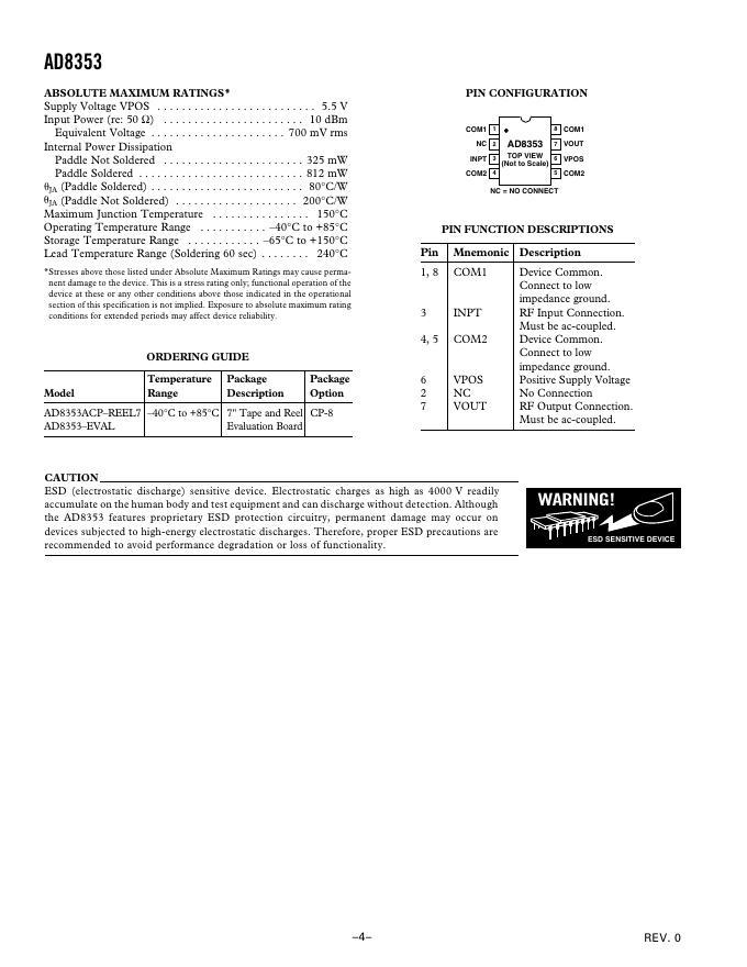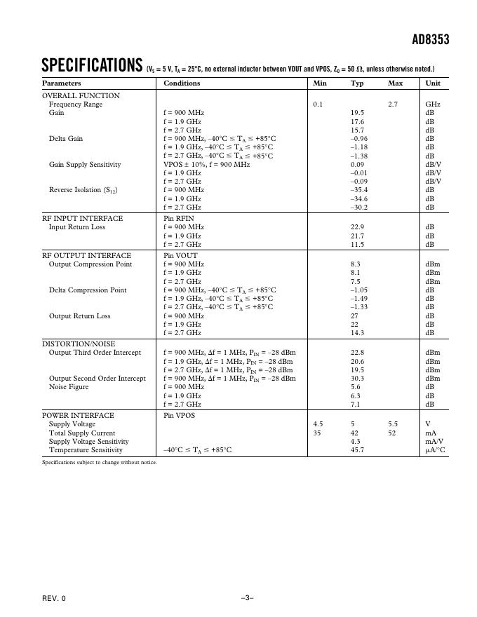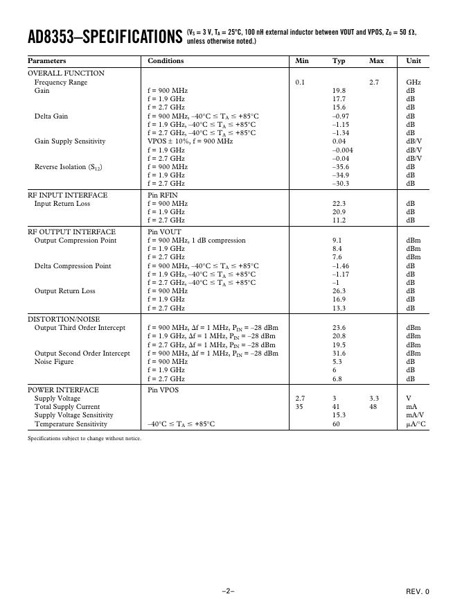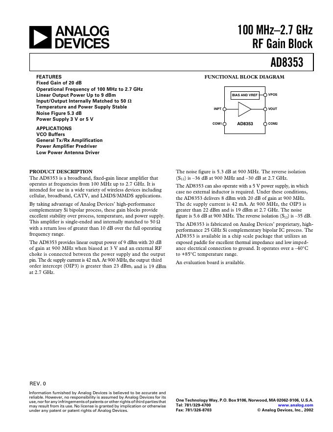 ANALOG DEVICES 100 MHz–2.7 GHz RF Gain Block AD8353 数据手册.pdf
