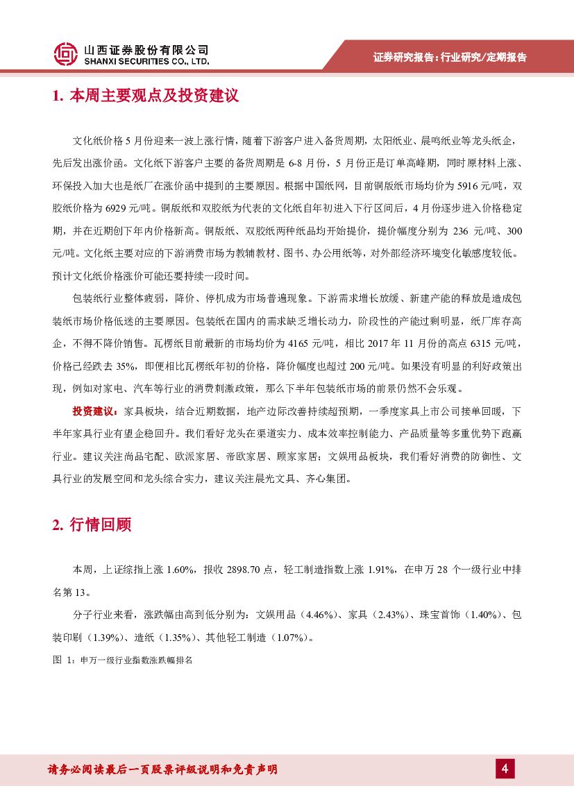 山西证券:轻工制造行业周报:文化纸价格5月迎来上涨,包装纸市场整体疲弱.pdf