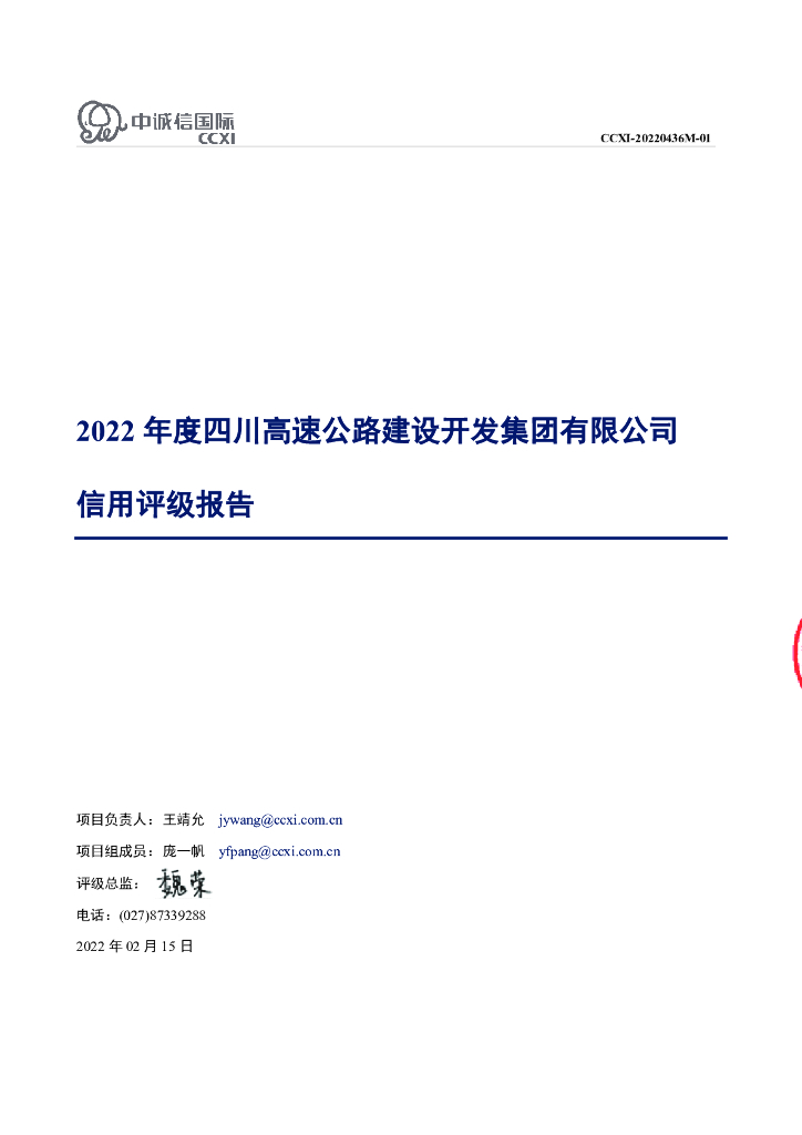 中诚信:四川高速公路建设开发集团有限公司主体信用评级报告及跟踪评级安排.pdf