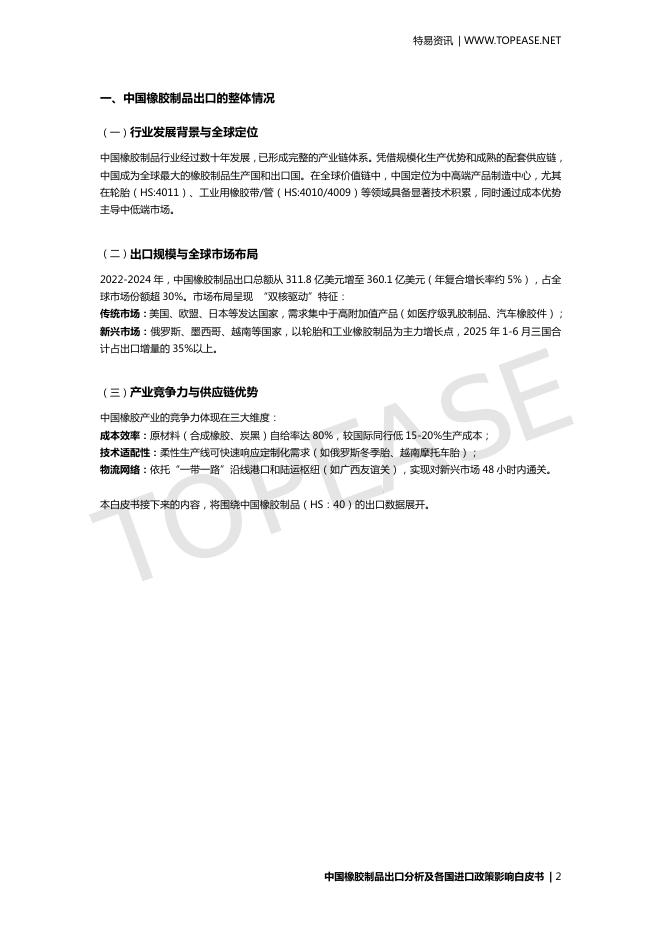 特易资讯:2025年中国橡胶制品出口分析及各国进口政策影响白皮书.pdf
