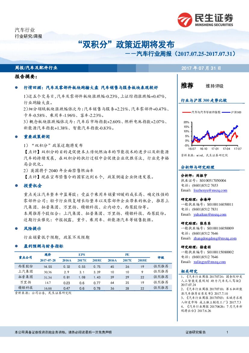 民生证券:汽车行业周报:“双积分”政策近期将发布.pdf