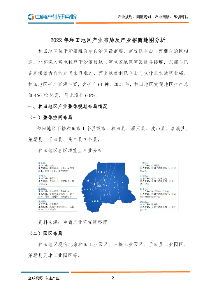 中商产业研究院:2022年和田地区产业布局及产业招商地图分析.pdf