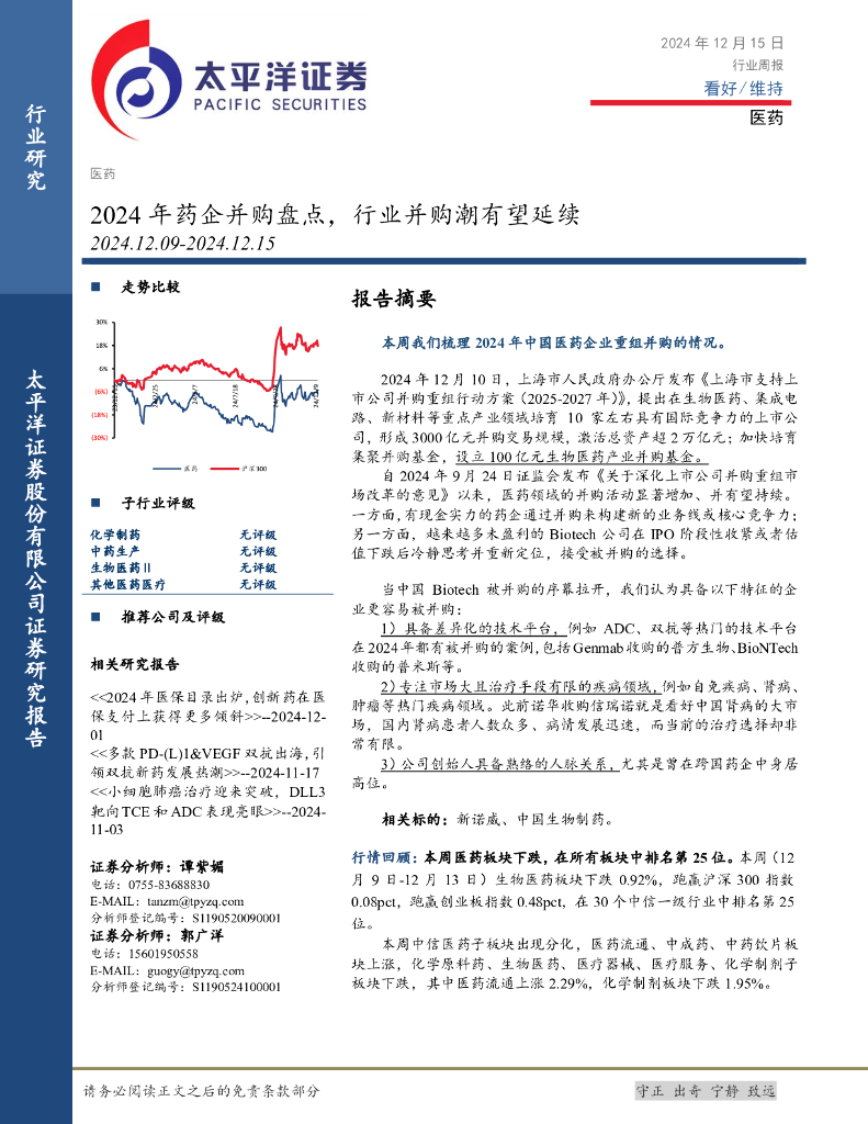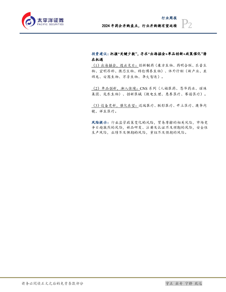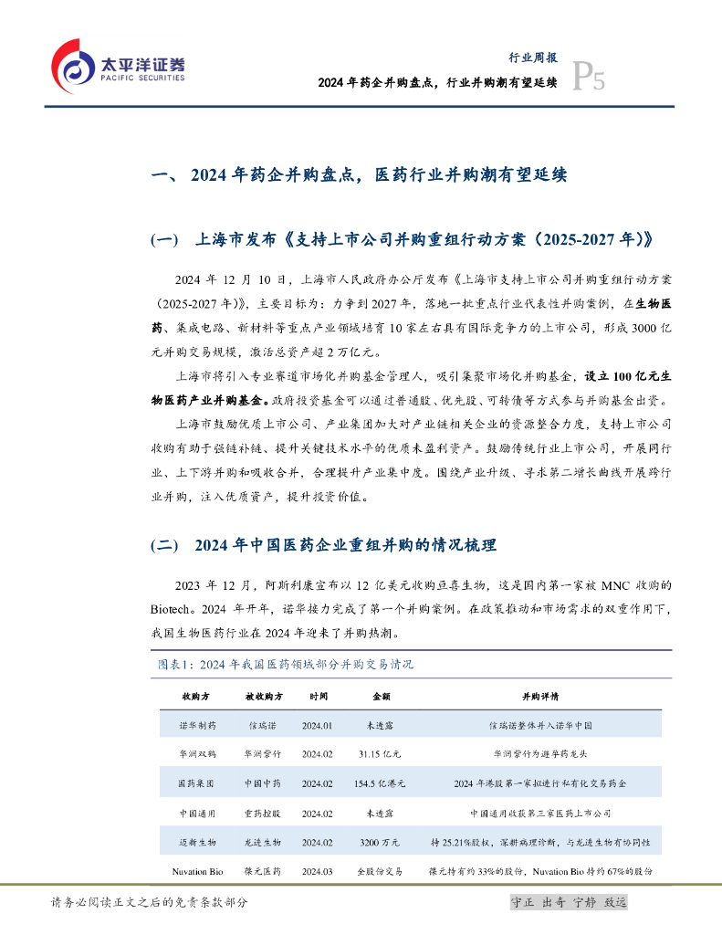 太平洋证券:医药行业周报:2024年药企并购盘点,行业并购潮有望延续.pdf