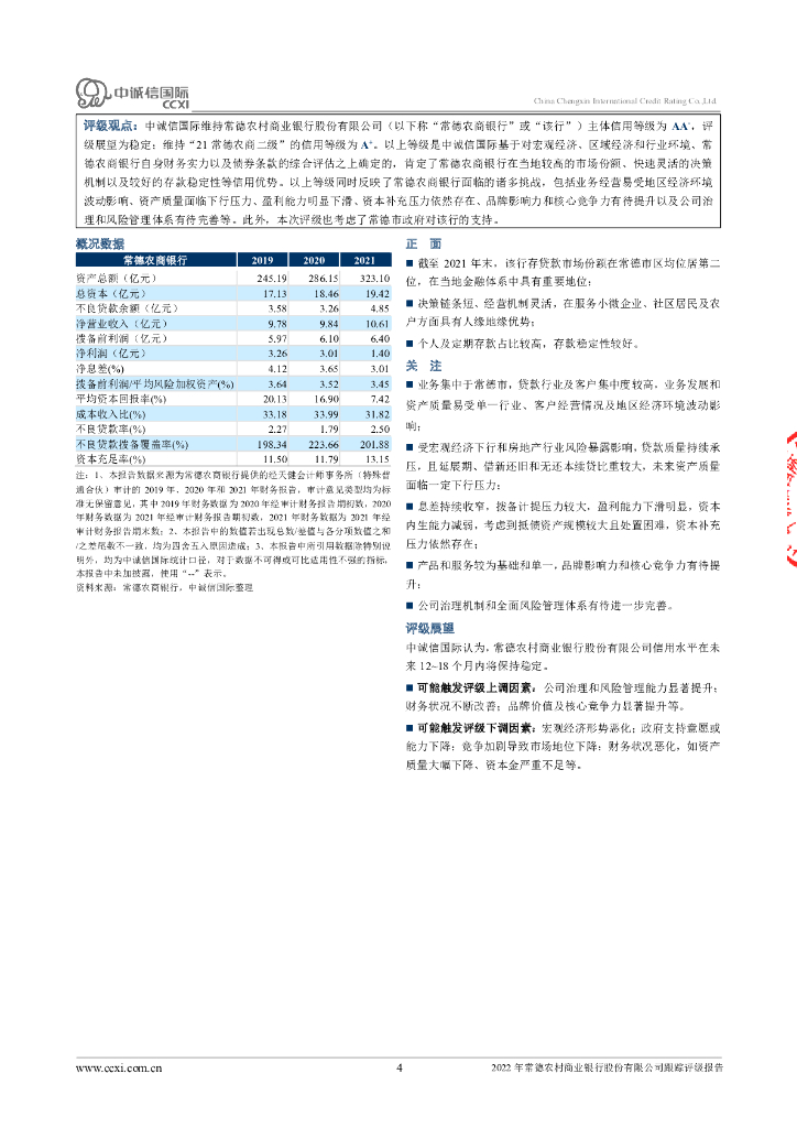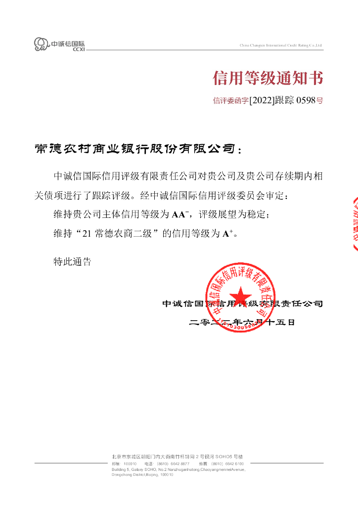 中诚信:2022年常德农村商业银行股份有限公司跟踪评级报告.pdf