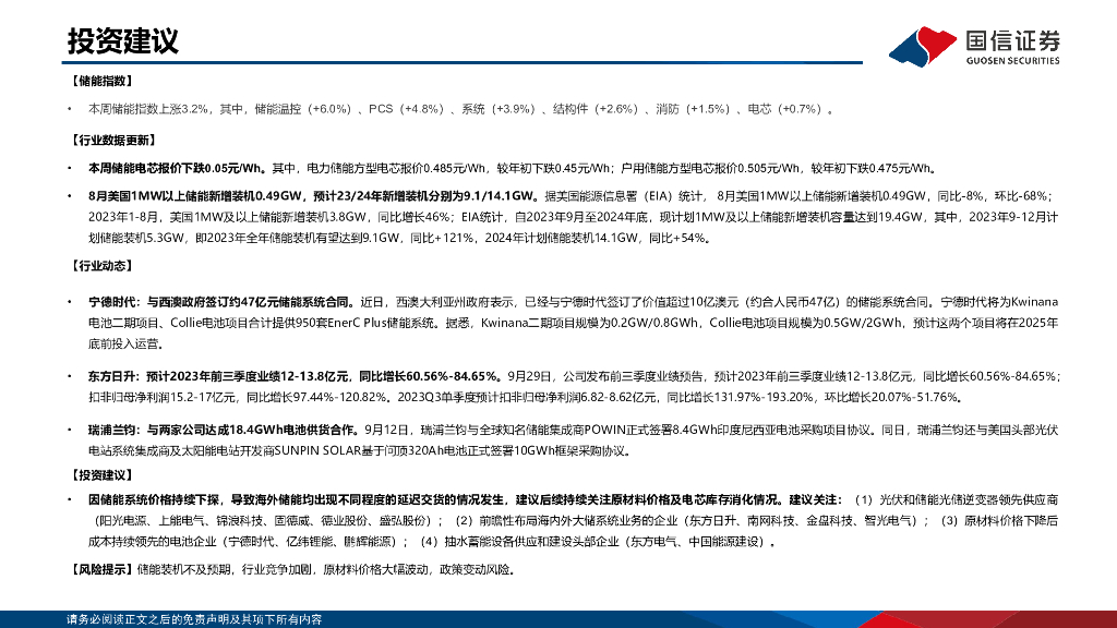 国信证券:储能产业链周评(9月第5周):储能公司出海频获大单,储能电芯价格持续下跌.pdf