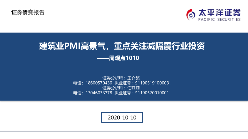 太平洋证券:建筑周观点:建筑业PMI高景气,重点关注减隔震行业投资.pdf