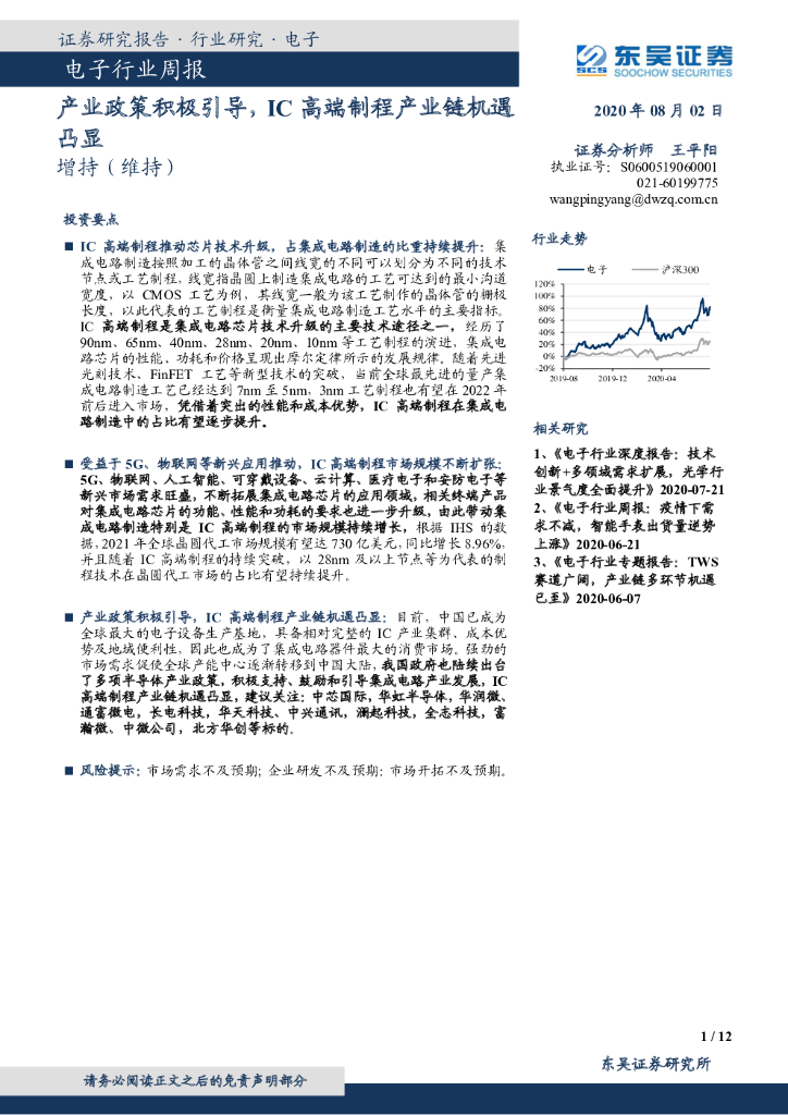 东吴证券:电子行业周报:产业政策积极引导,IC高端制程产业链机遇凸显.pdf