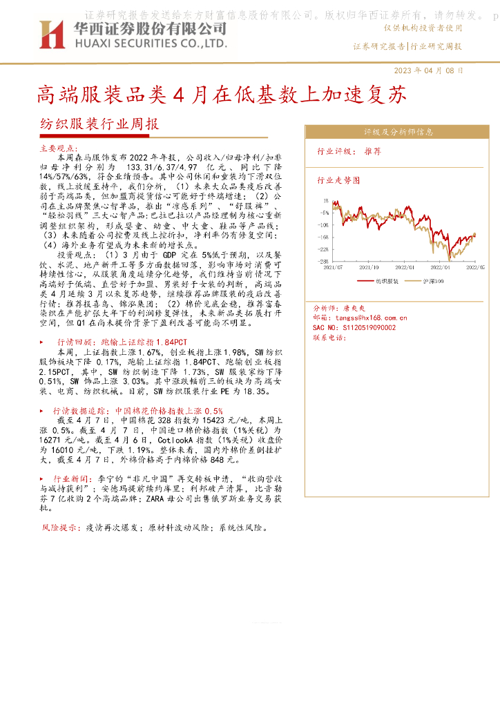 华西证券:纺织服装行业周报:高端服装品类4月在低基数上加速复苏.pdf