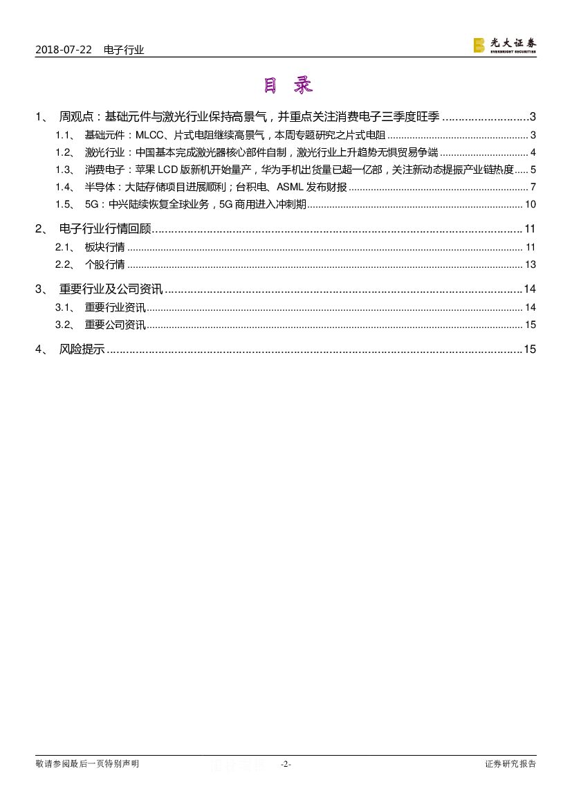 光大证券:电子行业周报:基础元件与激光行业保持高景气,并重点关注消费电子三季度旺季.pdf