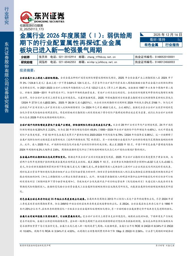 东兴证券:金属行业2026年度展望(Ⅰ):弱供给周期下的行业配置属性再探讨—工业金属板块已进入新一轮强景气周期.pdf