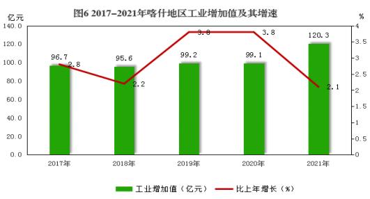 2021年,喀什地区在自治区党委、地委坚强领导下,坚持以习近平新时代中国特色社会主义思想为指导,深入贯彻党的十九大和十九届历次全会精神,完整准确贯彻新时代党的治疆方略,弘扬伟大建党精神,紧紧聚焦社会稳定和长治久安总目标,坚持稳中求进总基调,完整准确全面贯彻新发展理念,主动融入和服务新发展格局迈出新步伐,科学统筹疫情防控和经济社会发展,高质量发展取得新成效,地区经济运行稳定恢复,产业结构更趋优化,农业基础地位更加稳固,工业生产保持向好,固定资产投资快速增长,就业规模持续扩大,民生保障更加有力,各项社会事业全面发展,实现了“十四五”良好开局。