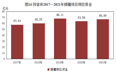 2021年四省市对口援建项目295个,援疆到位资金66.99亿元,资金到位率100%,其中,山东省援疆项目92个,到位资金14.7亿元;上海市援疆项目87个,到位资金28.57亿元;广东省援疆项目49个,到位资金13.02亿元;深圳市援疆项目67个,到位资金10.7亿元。