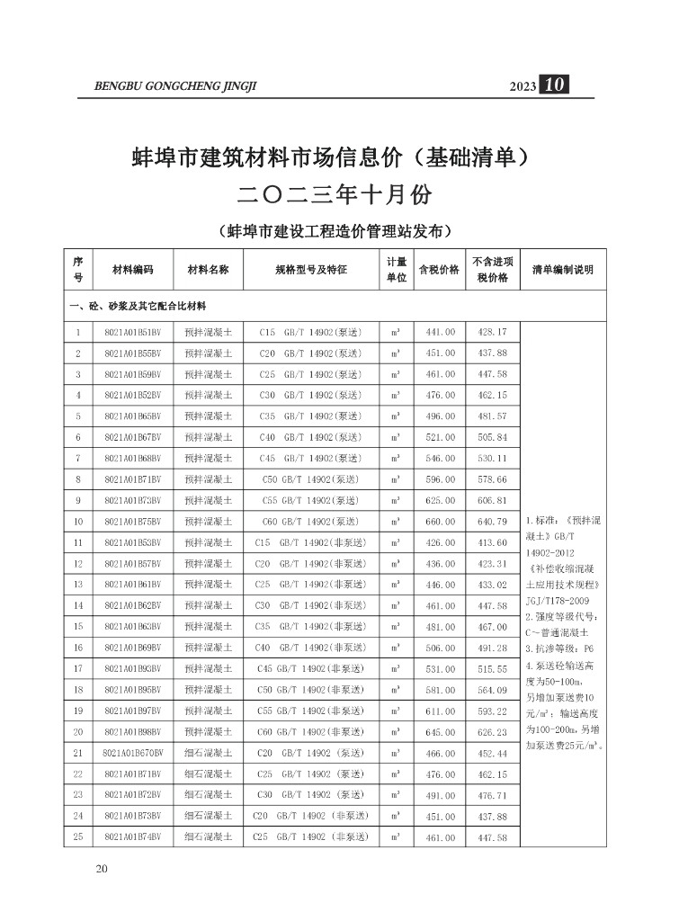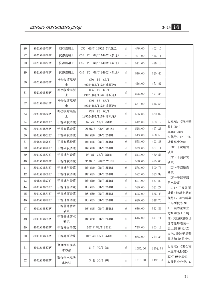 蚌埠市2023年10月建筑材料市场价格信息.pdf