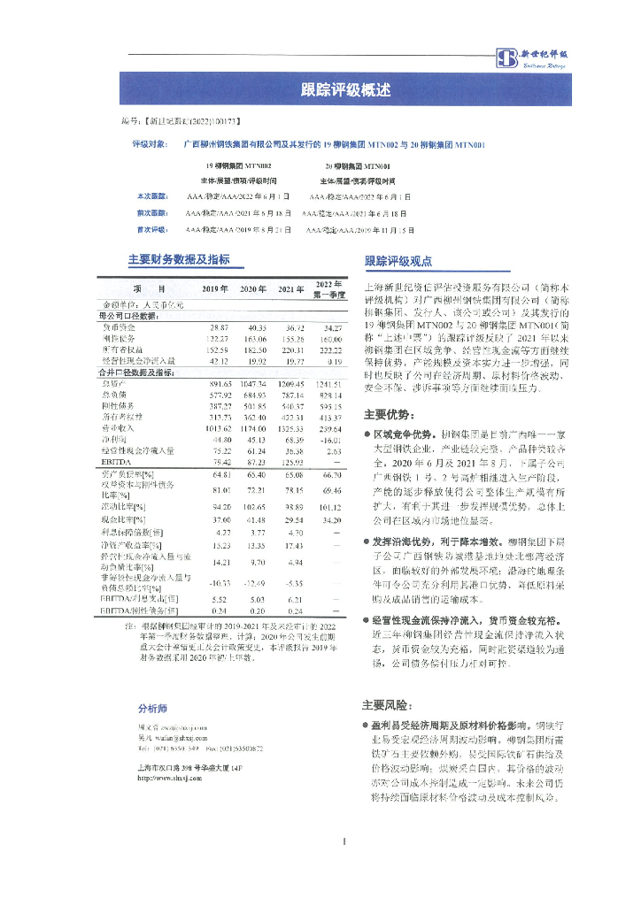 新世纪:广西柳州钢铁集团有限公司及其发行的19柳钢集团MTN002与20柳钢集团MTN001跟踪评级报告.pdf