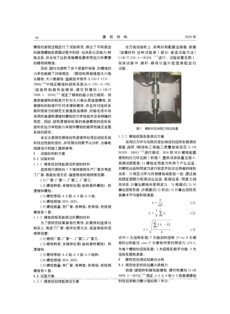 普通螺栓镀锌前后抗拉承载力及扭矩系数测试.pdf