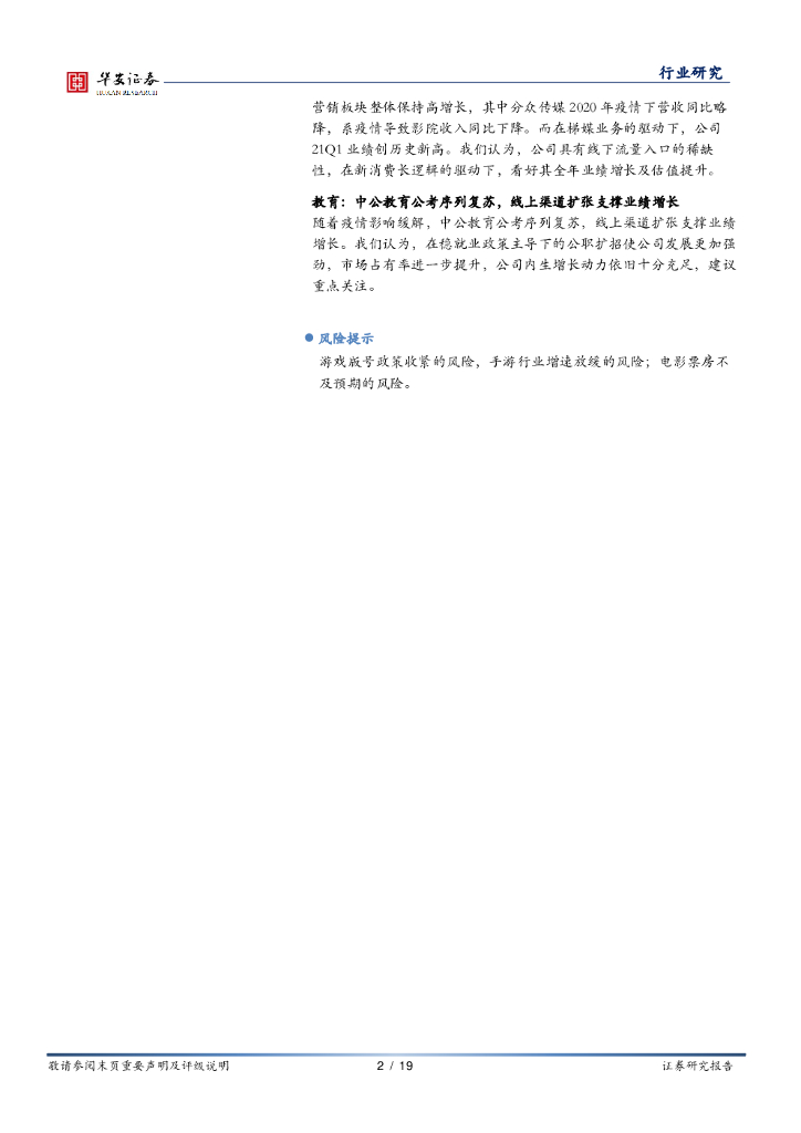 华安证券:传媒行业周报:视频及营销龙头业绩亮眼,静待游戏新一轮产品周期.pdf