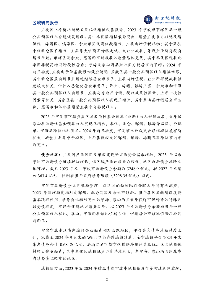 新世纪评级:宁波市及下辖各区县经济财政实力与债务研究(2024).pdf