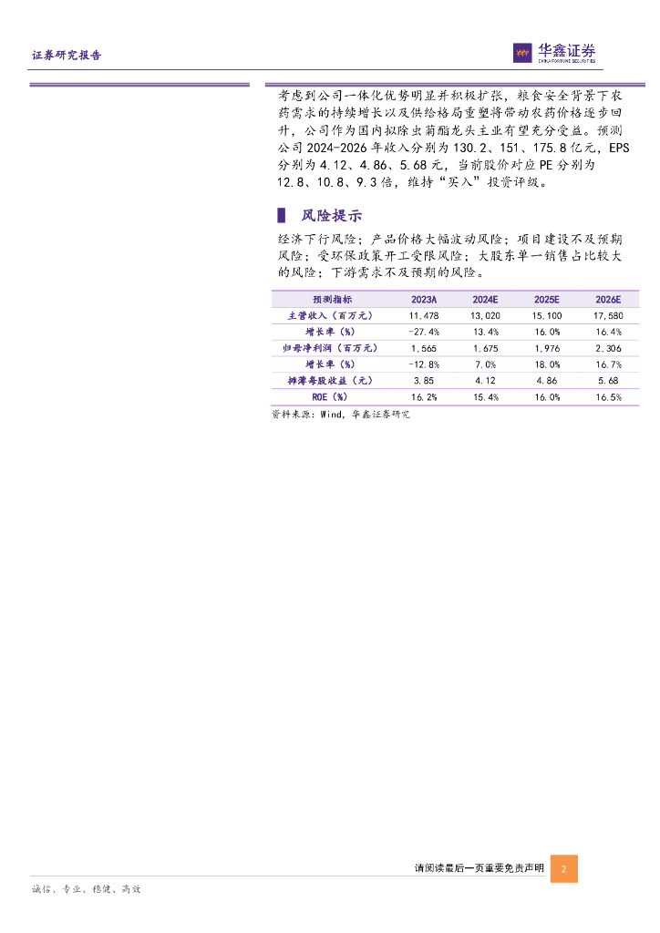 华鑫证券:扬农化工(600486)-公司深度报告:静待农药景气度提升,多项目推进巩固龙头地位.pdf