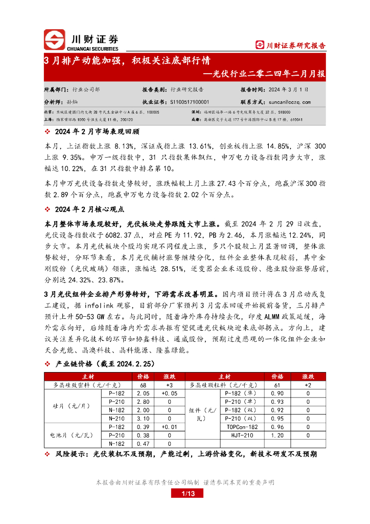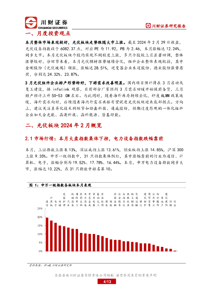 川财证券:光伏行业二零二四年二月月报:3月排产动能加强,积极关注底部行情.pdf