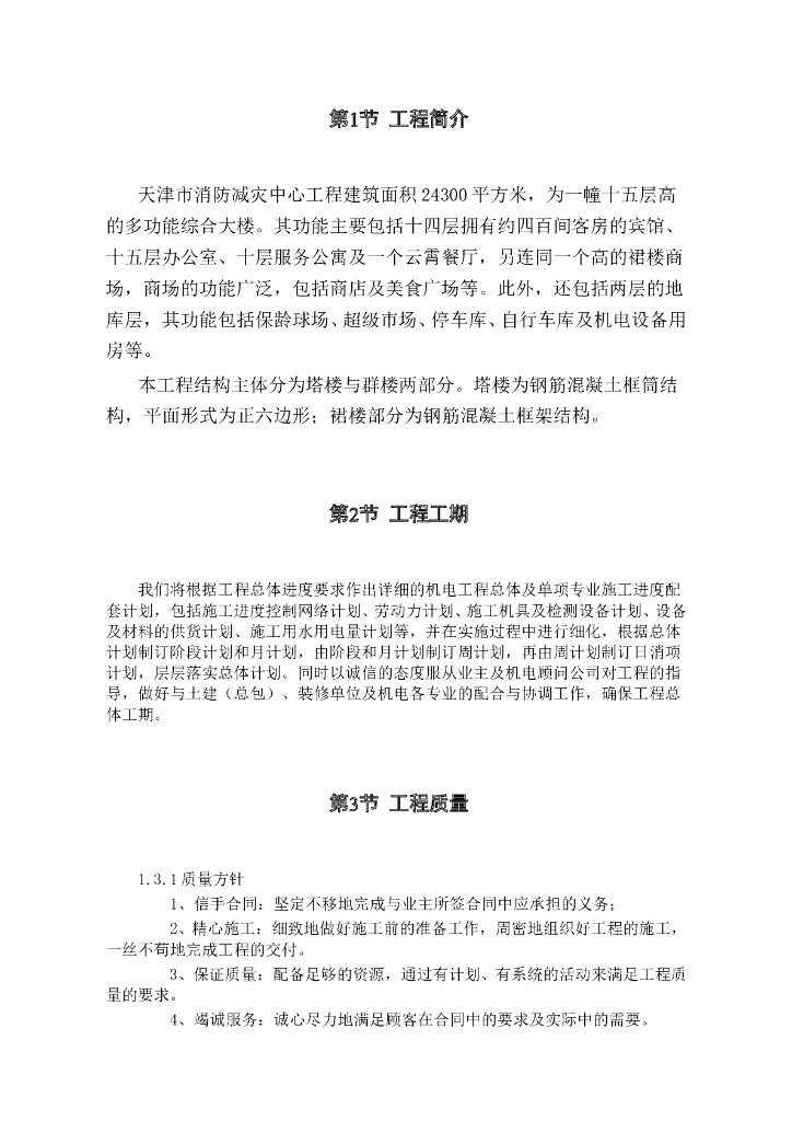 天津市消防减灾中心机电安装工程施工组织设计方案(Word).doc