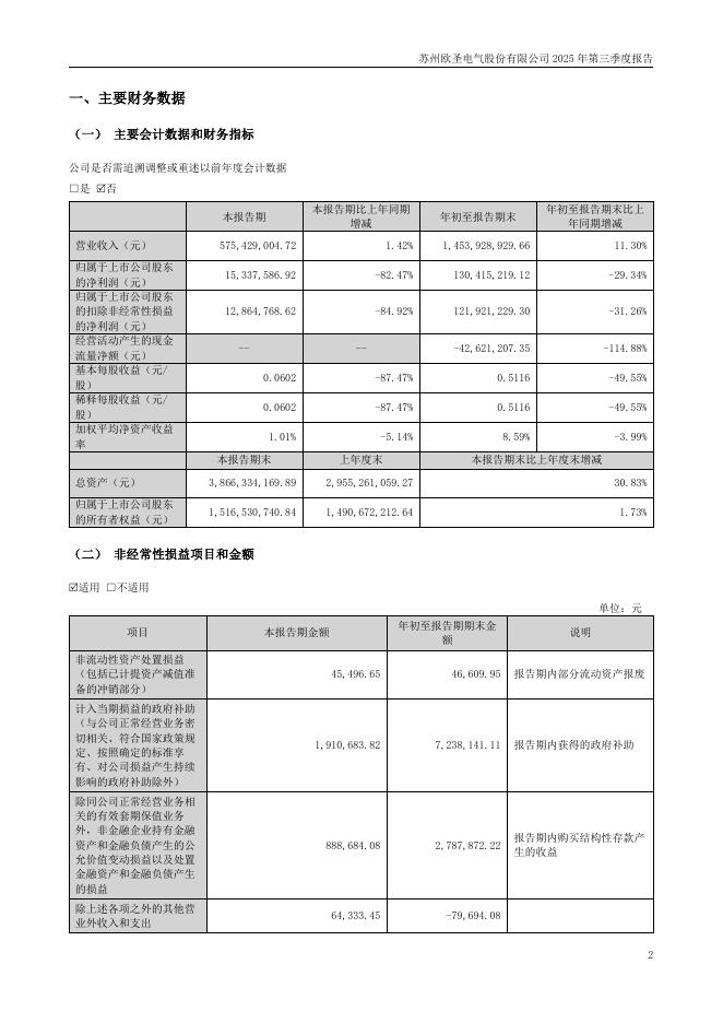 301187-欧圣电气:2025年三季度报告.pdf