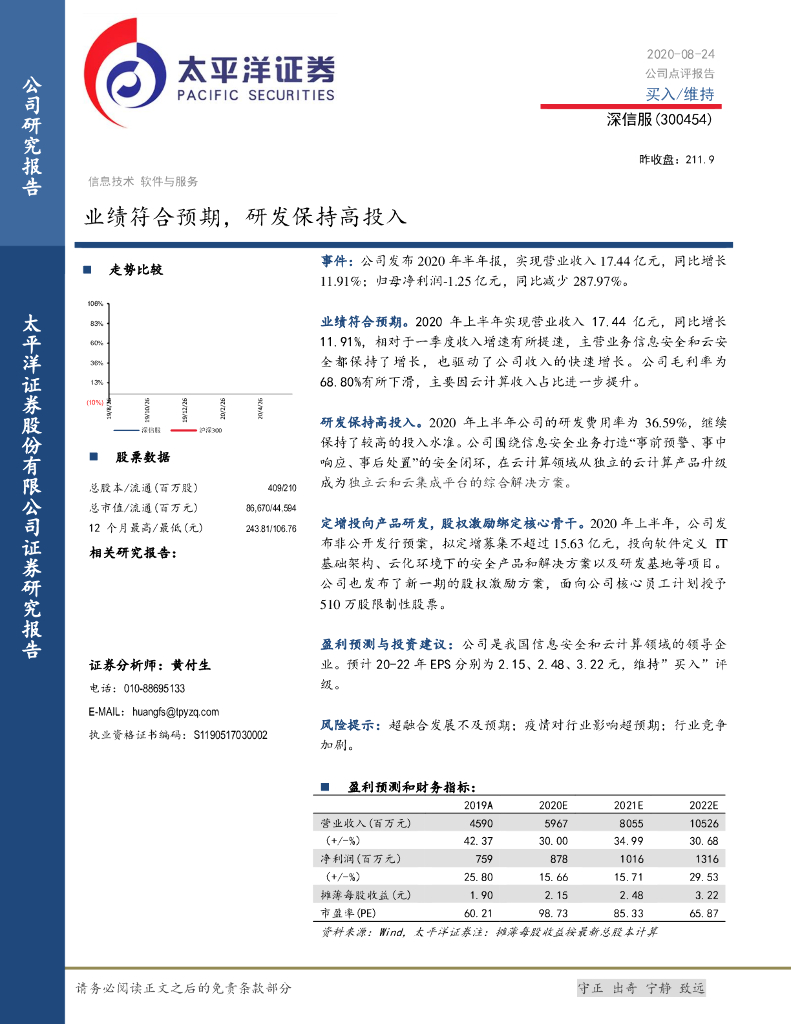 太平洋证券:深信服(300454)-业绩符合预期,研发保持高投入.pdf