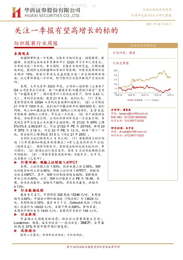 华西证券:纺织服装行业周报:关注一季报有望高增长的标的.pdf