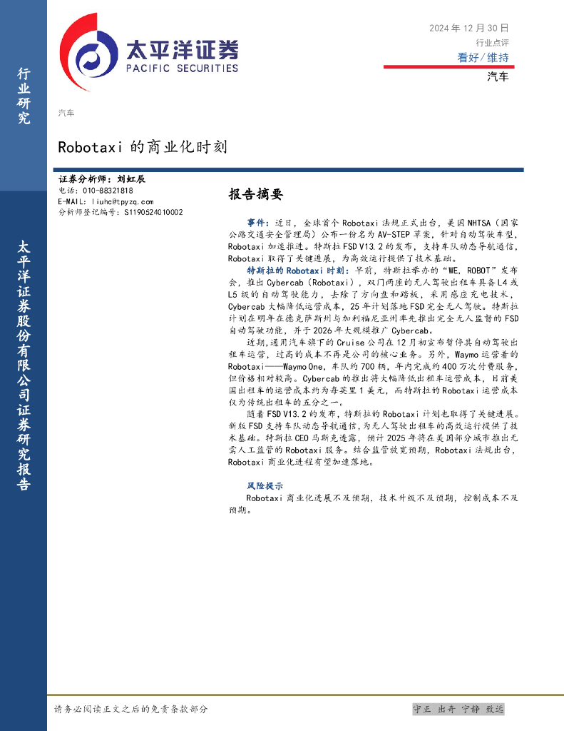 太平洋证券:汽车:Robotaxi的商业化时刻.pdf