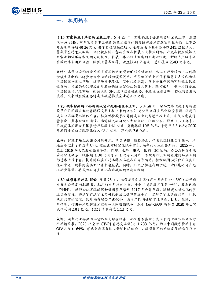 国盛证券:交通运输行业周报:京东物流完成上市,顺丰拟分拆同城业务.pdf
