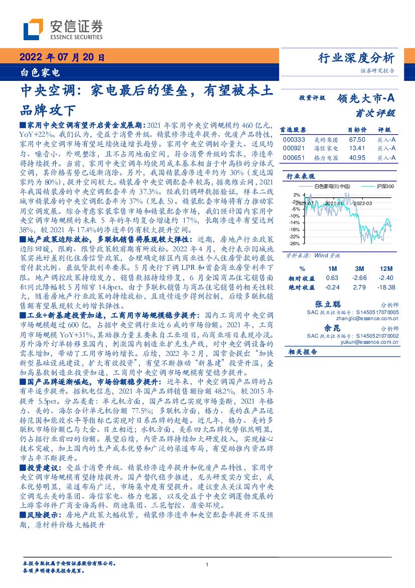 安信证券:白色家电行业深度分析:中央空调:家电最后的堡垒,有望被本土品牌攻下.pdf