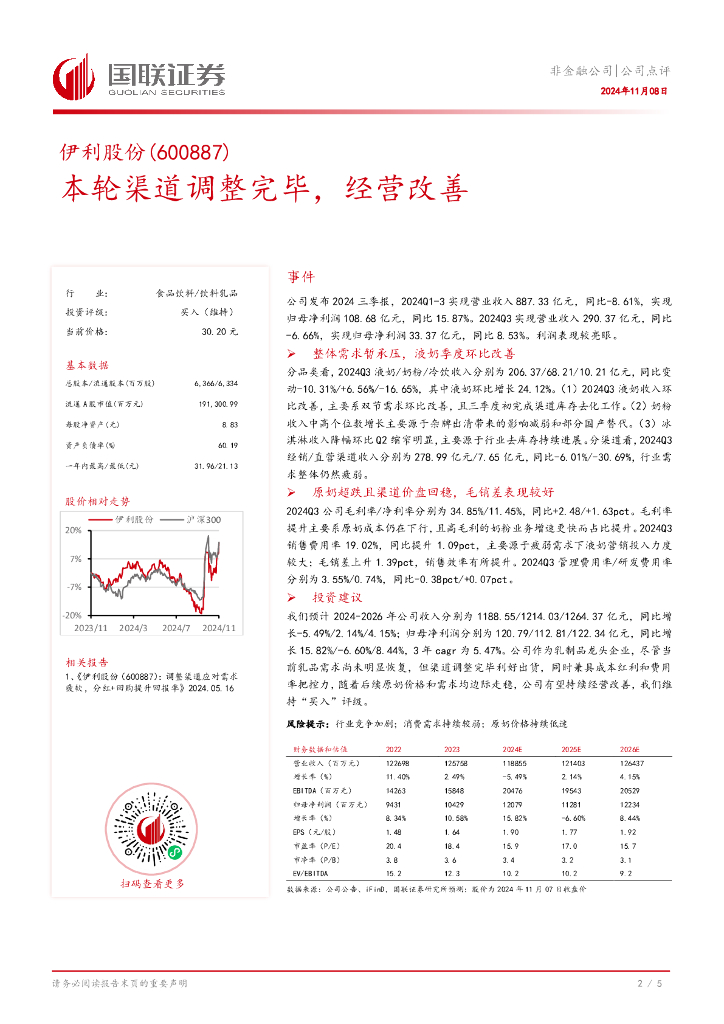 国联证券:伊利股份(600887)-本轮渠道调整完毕,经营改善.pdf