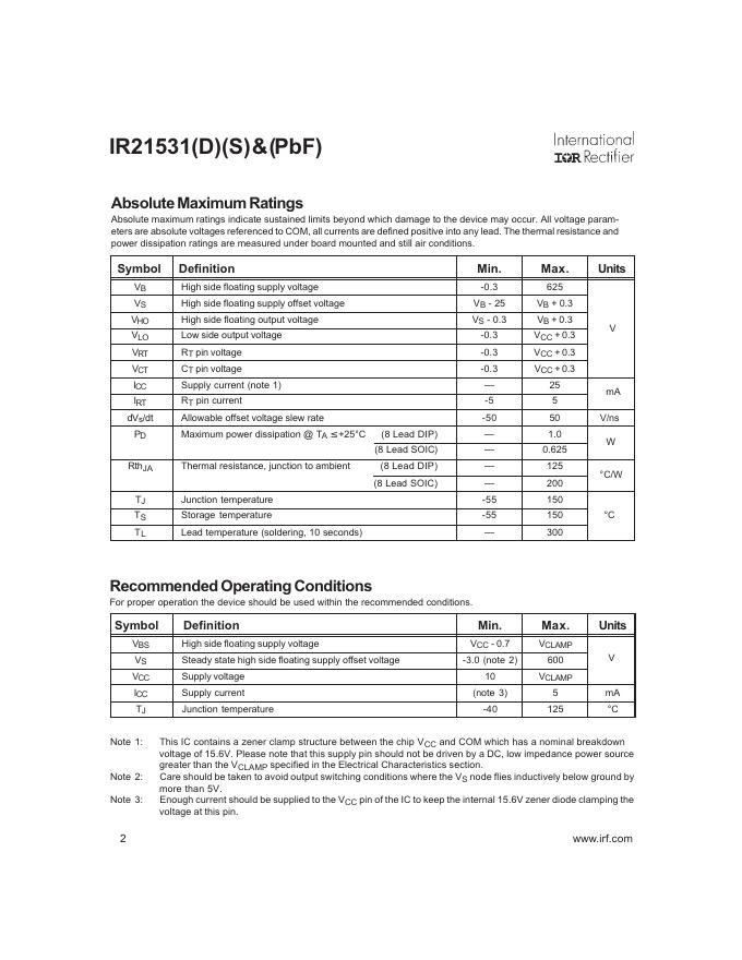 International IOR Rectifier IR21531(D)(S)&(PbF) 数据手册.pdf