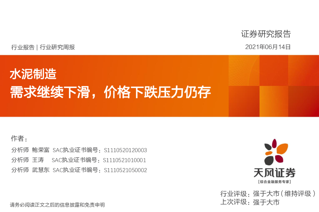 天风证券:水泥制造行业:需求继续下滑,价格下跌压力仍存.pdf