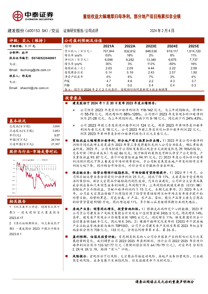 中泰证券:建发股份(600153)-重组收益大幅增厚归母净利,部分地产项目拖累扣非业绩.pdf
